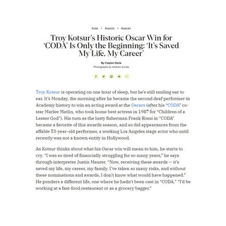 "Troy Kotsur's Historic Oscar Win for 'CODA' Is Only the Beginning"